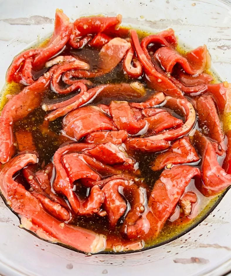 Marinate the Beef Medallions: Add the 2 pounds of steak strips to the marinade mixture. Ensure that the steak is well coated with the liquid mixture. Allow the steak to marinate in this mixture for 15-20 minutes, giving it ample time to soak in the flavors.