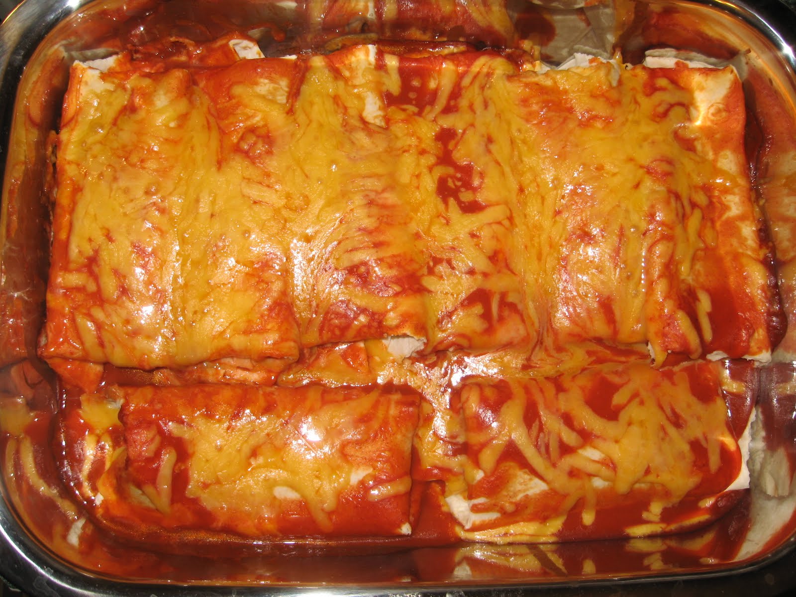 - Place in a layer on the bottom of a casserole dish and top with an additional can of enchilada sauce.