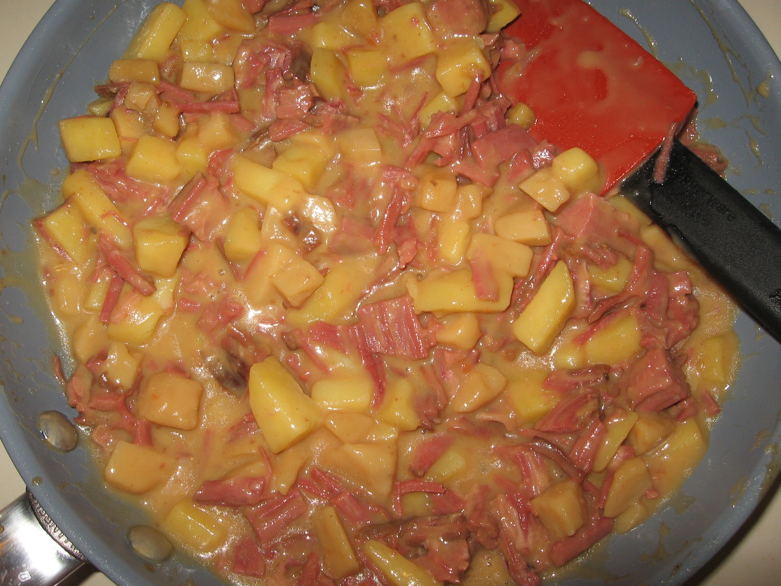 peel and dice 1-2 more and pop into a pan with the leftover corned beef juice.