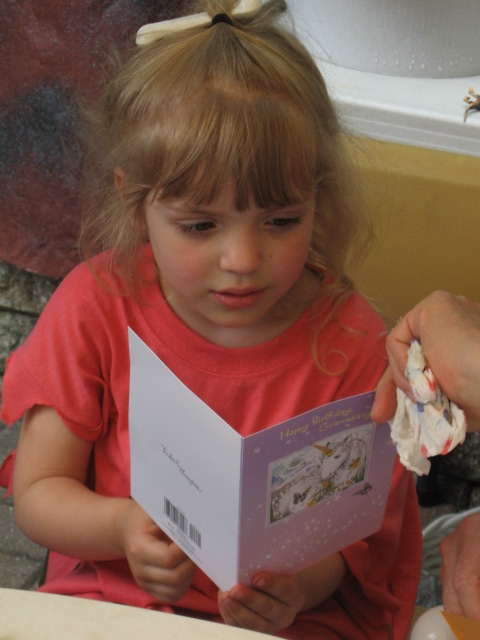 Now came the gift opening – they were all so excited about what they brought for her that they REALLY wanted to do it sooner! we had two “special” chairs – one for Miss Sarah to sit in and one for the friend who’s gift was being opened to sit in.