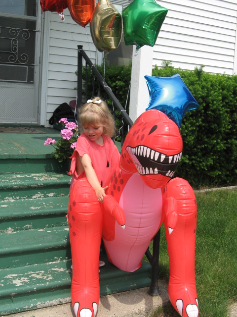 We added a four foot tall T Rex to greet every one along with five star shaped balloons.