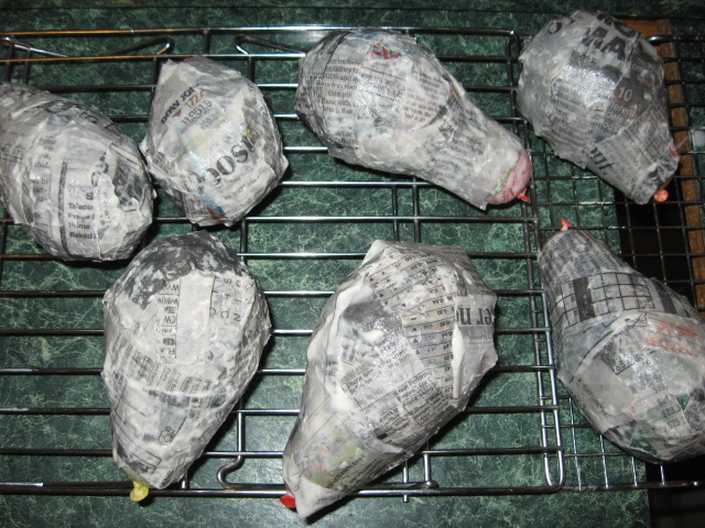 • The paper mache items were simply recycling newspapers and using up old water balloons from last summer (FREE)
