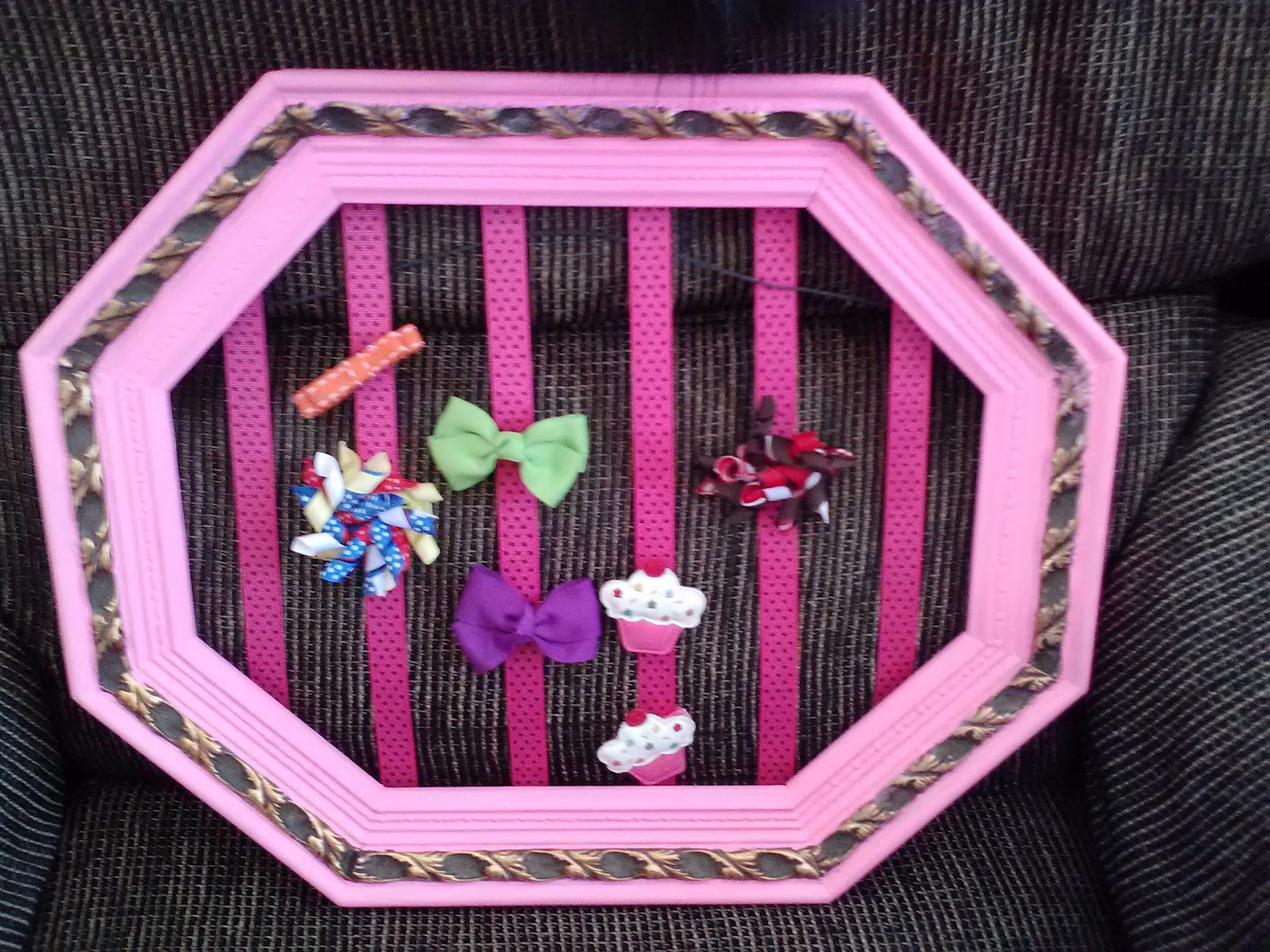 And voila! Bow Holder complete! It’s super simple, affordable, and will give your little girl more time with you because they can find everything all at once instead of having you help them every five minutes or worse – losing something precious altogether.